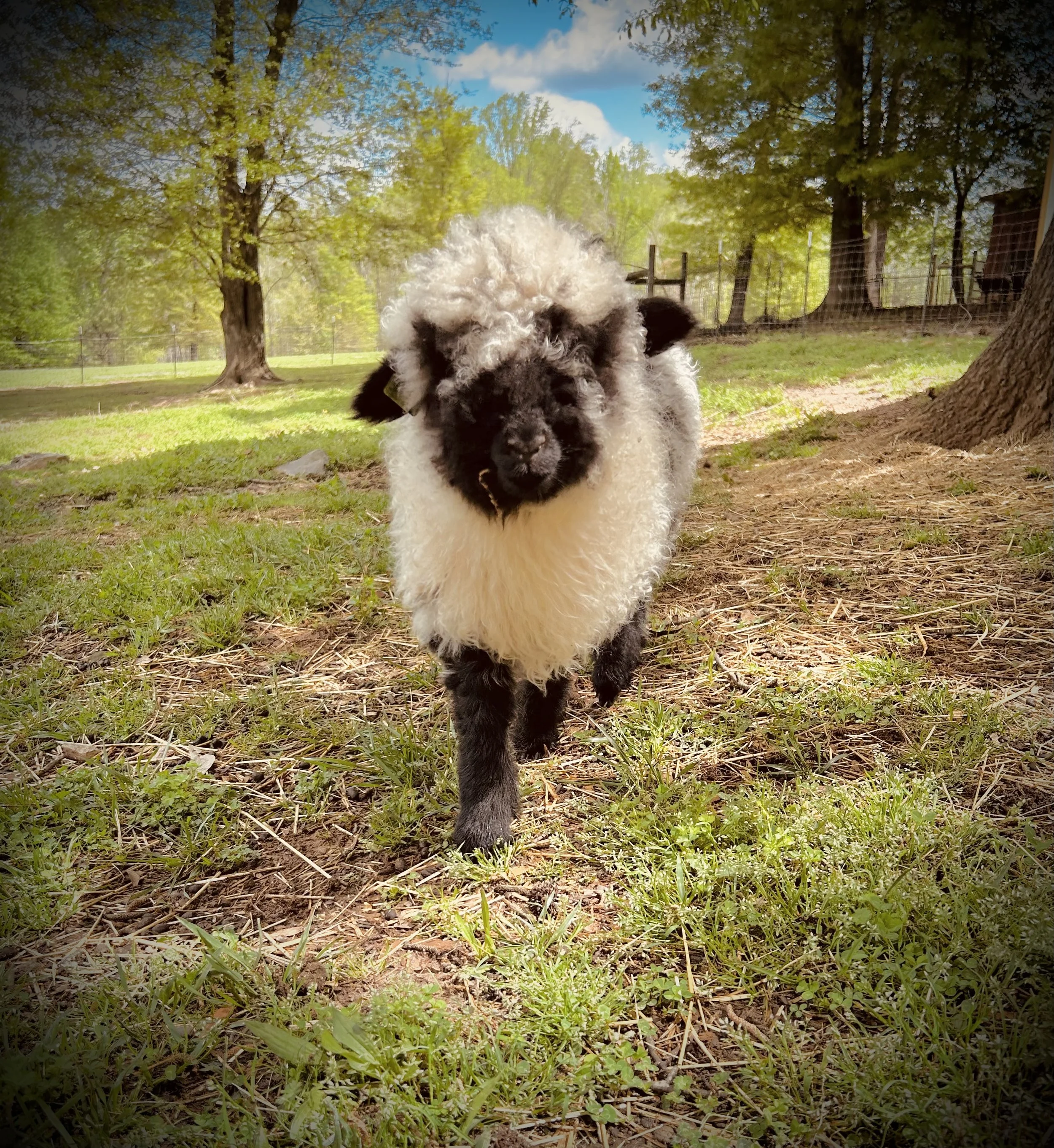 A “Spitti” Valais Blacknose sheep is a unique variation within the breed, known for its reverse coloring and distinctive markings. While they are purebred Valais Blacknose, these sheep often display black wool in place of the traditional white, or exhibit more irregular splotching patterns. Their one-of-a-kind appearance adds a striking touch of individuality to any flock.